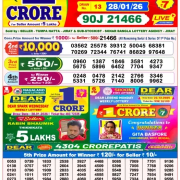 RESULT DEAR CROWN FRIDAY WEEKLY LOTTERY 30.01.2026