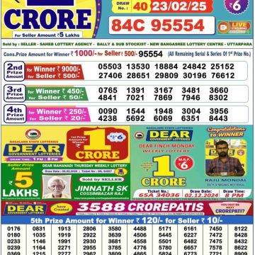RESULT DEAR 50 RAVI SUNDAY WEEKLY LOTTERY 23.02.2025