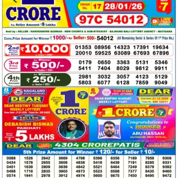 RESULT DEAR DESTINY TUESDAY WEEKLY LOTTERY 27.01.2026