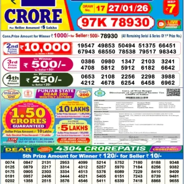 RESULT DEAR PRESTIGE TUESDAY WEEKLY LOTTERY 20.01.2026