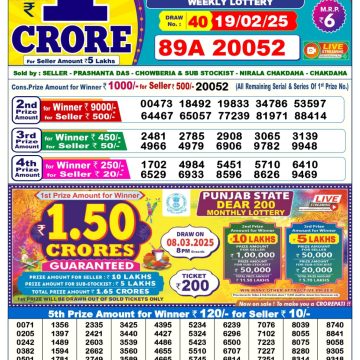 RESULT DEAR 50 CHENAB WEDNESDAY WEEKLY LOTTERY 19.02.2025
