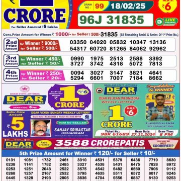 RESULT DEAR GOOSE TUESDAY WEEKLY LOTTERY 18.02.2025