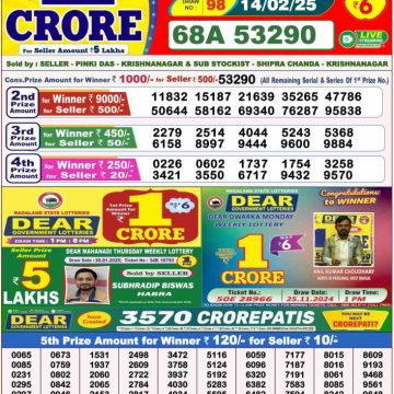 RESULT DEAR SUPER SILVER FRIDAY WEEKLY LOTTERY 14.02.2025