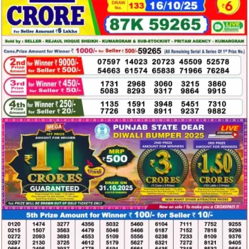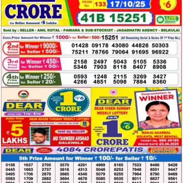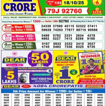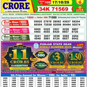 RESULT DEAR CROWN FRIDAY WEEKLY LOTTERY 17.10.2025