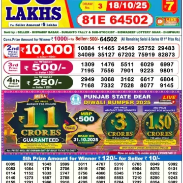 RESULT PUNJAB STATE DEAR 50 COLT FRIDAY WEEKLY LOTTERY 17.10.2025