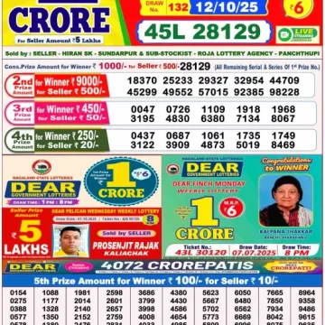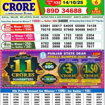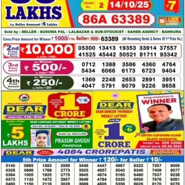 Result Dear PRESTIGE Tuesday Weekly Lottery 14.10.2025
