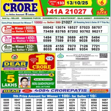 RESULT DEAR DWARKA MONDAY WEEKLY LOTTERY 13.10.2025