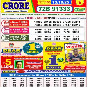 Result Dear Labhlaxmi Charm Tuesday Weekly Lottery 14.10.2025