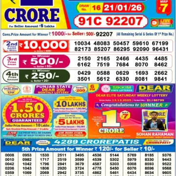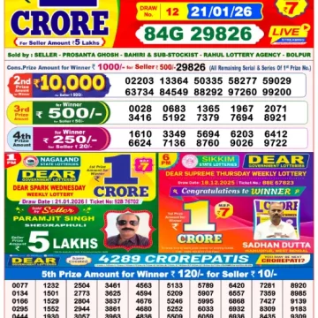Dear Lottery Results Today – Lottery Sambad Today