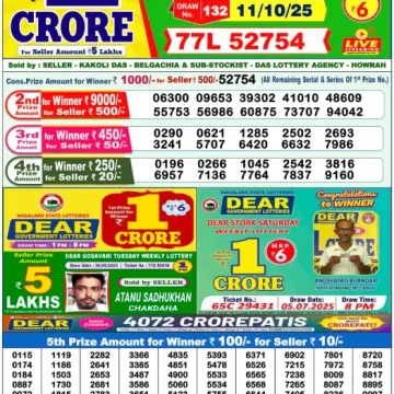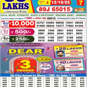 RESULT DEAR PUJA BUMPER 2025 LOTTERY 11.10.2025