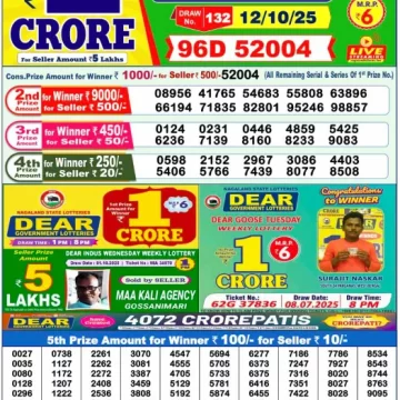 • RESULT DEAR SUPREME FRIDAY WEEKLY LOTTERY 05.12.2025