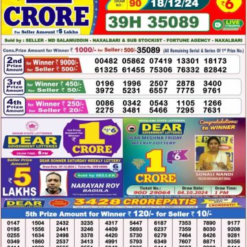 RESULT DEAR SUPER PERAL WEDNESDAY WEEKLY LOTTERY 18.12.2024