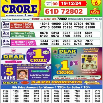 RESULT DEAR MAHANADI THURSDAY WEEKLY LOTTERY 19.12.2024