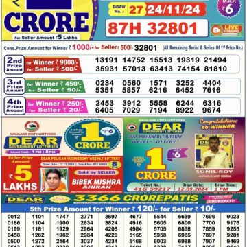 RESULT DEAR DWARKA MONDAY WEEKLY LOTTERY 25.11.2024