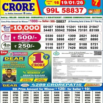 Dear Lottery Results Today – Lottery Sambad Today