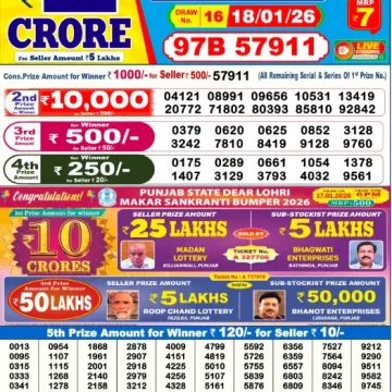 RESULT DEAR 50 RANGER SUNDAY WEEKLY LOTTERY 18.01.2026