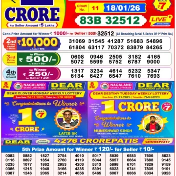RESULT DEAR CLOVER MONDAY WEEKLY LOTTERY 19.01.2026