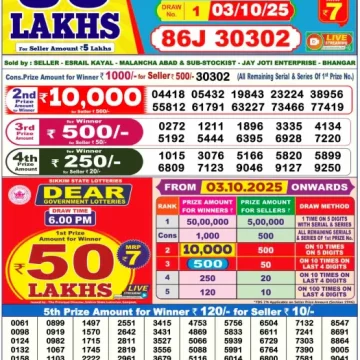 RESULT DEAR 50 COLT FRIDAY WEEKLY LOTTERY 03.10.2025