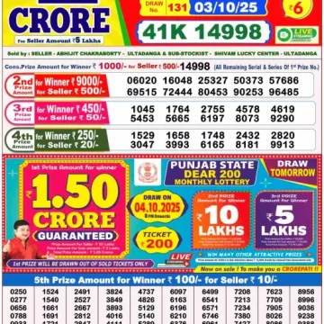 RESULT PUNJAB STATE DEAR 200 MONTHLY LOTTERY 04.10.2025
