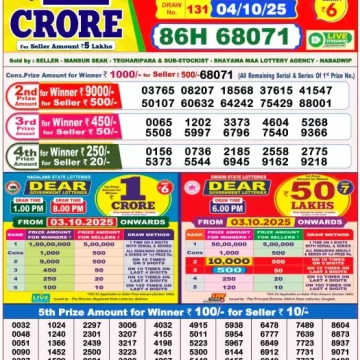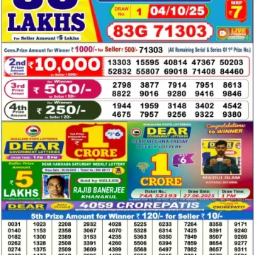 RESULT DEAR CROWN FRIDAY WEEKLY LOTTERY 03.10.2025