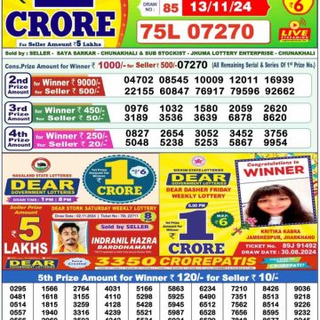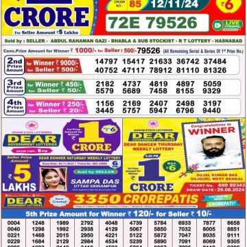 RESULT DEAR 100 BEAS TUESDAY WEEKLY LOTTERY 12.11.2024