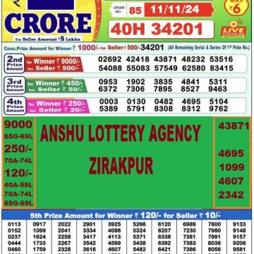 RESULT LABHLAXMI POWER SUNDAY WEEKLY LOTTERY 10.11.2024