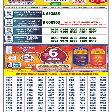 RESULT PUNJAB STATE DEAR 200 MONTHLY LOTTERY 05.11.2024