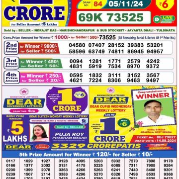 RESULT DEAR SUPER DIAMOND TUESDAY WEEKLY LOTTERY 05.11.2024