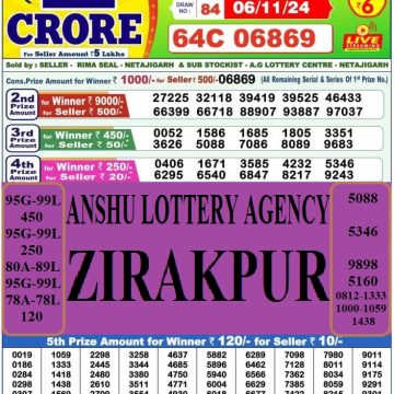 RESULT DEAR 50 CHENAB WEDNESDAY WEEKLY LOTTERY 06.11.2024