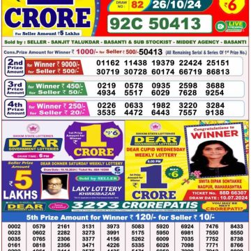 RESULT DEAR YAMUNA SUNDAY WEEKLY LOTTERY 27.10.2024
