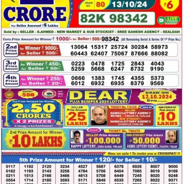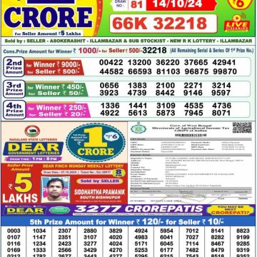 RESULT DEAR DWARKA MONDAY WEEKLY LOTTERY 14.10.2024