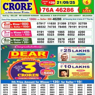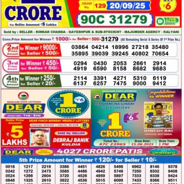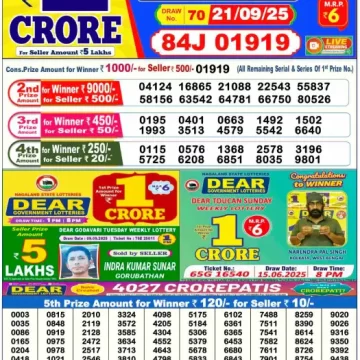 RESULT DEAR YAMUNA SUNDAY WEEKLY LOTTERY 21.09.2025