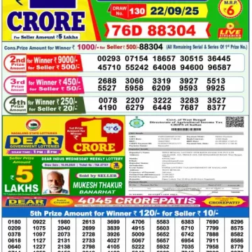 RESULT DEAR DWARKA MONDAY WEEKLY LOTTERY 22.09.2025
