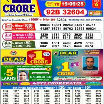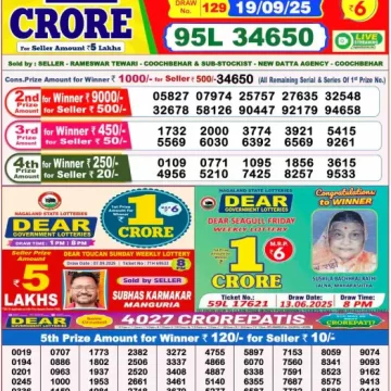 RESULT DEAR SEAGULL FRIDAY WEEKLY LOTTERY 19.09.2025