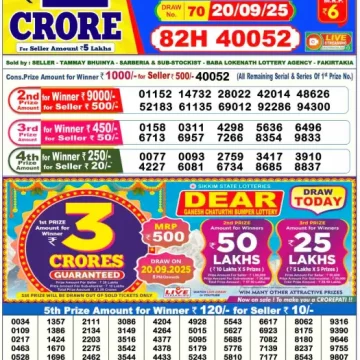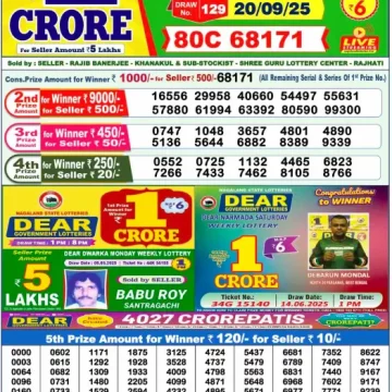 RESULT DEAR NARMADA SATURDAY WEEKLY LOTTERY 20.09.2025