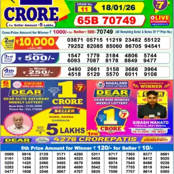 RESULT DEAR LUCKY SATURDAY WEEKLY LOTTERY 17.01.2026