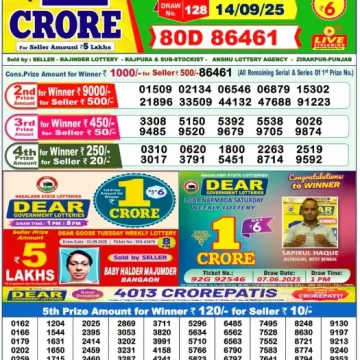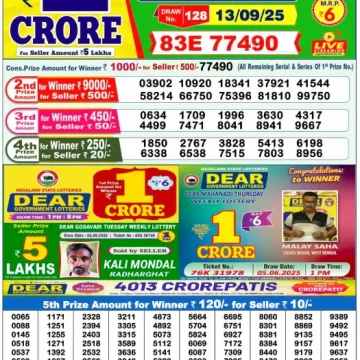 Dear Lottery Results Today – Lottery Sambad Today