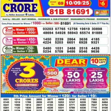 RESULT DEAR 10 PINE TUESDAY WEEKLY LOTTERY 09.09.2025