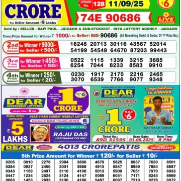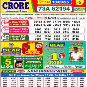 Dear Lottery Results Today – Lottery Sambad Today