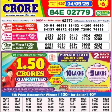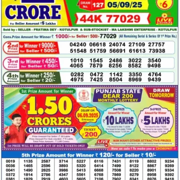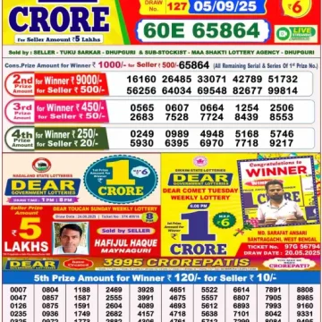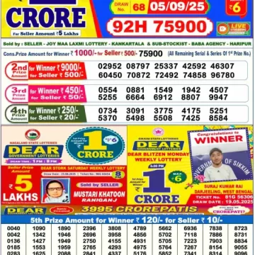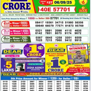 RESULT DEAR DASHER FRIDAY WEEKLY LOTTERY 05.09.2025
