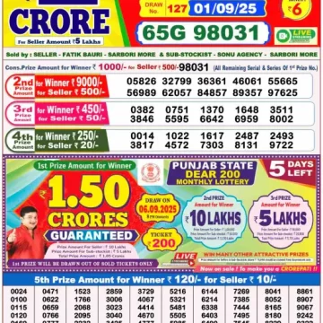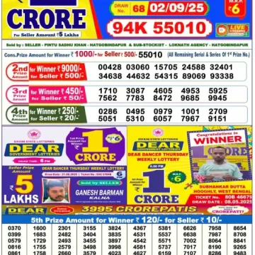 RESULT DEAR 10 PINE TUESDAY WEEKLY LOTTERY 02.09.2025