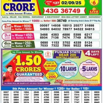 RESULT DEAR GODAVARI TUESDAY WEEKLY LOTTERY 02.09.2025