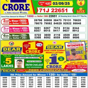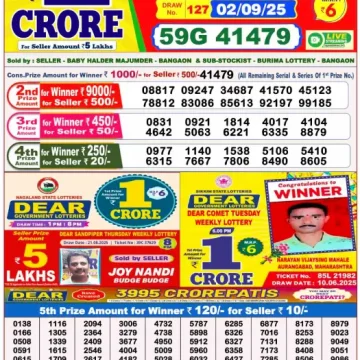 RESULT DEAR COMET TUESDAY WEEKLY LOTTERY 02.09.2025