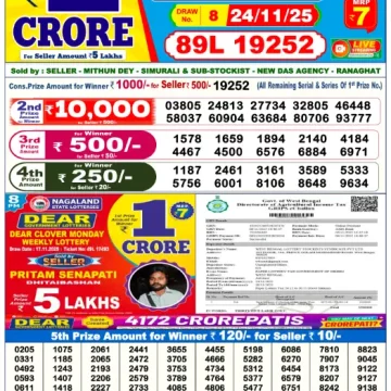 RESULT DEAR CLOVER MONDAY WEEKLY LOTTERY 24.11.2025