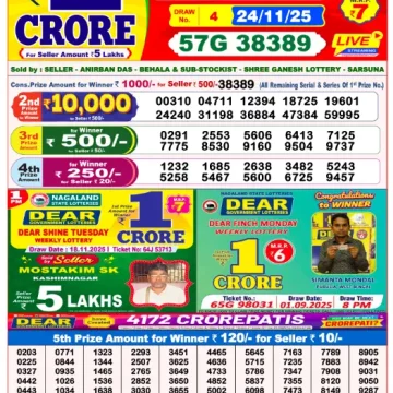 RESULT DEAR SHINE TUESDAY WEEKLY LOTTERY 25.11.2025