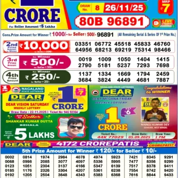 RESULT DEAR PRESTIGE TUESDAY WEEKLY LOTTERY 25.11.2025