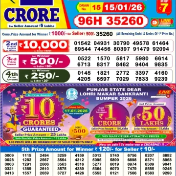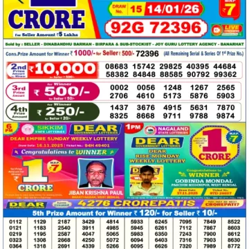 RESULT DEAR FAME THURSDAY WEEKLY LOTTERY 15.01.2026