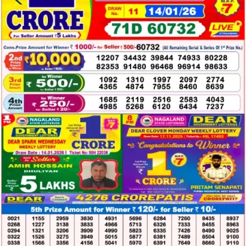 RESULT DEAR DREAM WEDNESDAY WEEKLY LOTTERY 14.01.2026