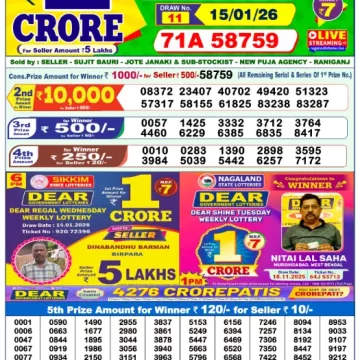 • RESULT DEAR CROWN FRIDAY WEEKLY LOTTERY 23.01.2026