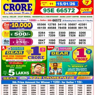RESULT DEAR STAR THURSDAY WEEKLY LOTTERY 15.01.2026